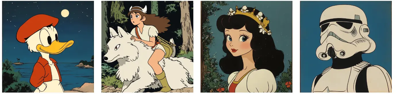 娱乐产业与角色推广:这种风格非常适合娱乐产业和角色推广,凭借其熟悉的视觉效果和情感吸引力,尤其在重新诠释经典角色方面效果显著。它可以应用于动画电影、系列剧以及周边产品设计中,进一步增强品牌文化认同感。