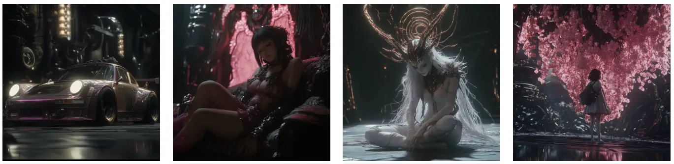 这种风格将赛博哥特与梦幻美感相结合,灵感源自未来城市与神秘传说的融合。整体色调以冷色为主,以紫色和银色为主色调,营造出梦幻且神秘的氛围。